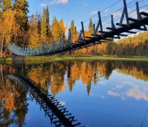 Su 20.9 Pieni Karhunkierros 10 km, Juuma, Oulangan kansallispuisto. (bussisiirtymä 23 km) Nauti kunnon aamiainen, sillä tänään on edessä viikon pisin reitti, klo. 10.00 lähtö hotellilta. Ajellaan Basecamp Oulangan pihaan, jonka reunasta siirrytään Pienelle Karhunkierrokselle. Tämä reittihän on se "kerran elämässä" reitti, ja toden totta, reittihän on uskomaton: Jyrävän putous, Harrisuvannon pitkä riippusilta, Myllykosken vanha myllyrakennus ym. Katseltavaa ja koettavaa riittää! Samoin korkeuseroja ja yhdet pitkät, Kallioportin portaat. Reitiltä palatessa lounas Basecamp Oulangassa. (sis. hintaan)